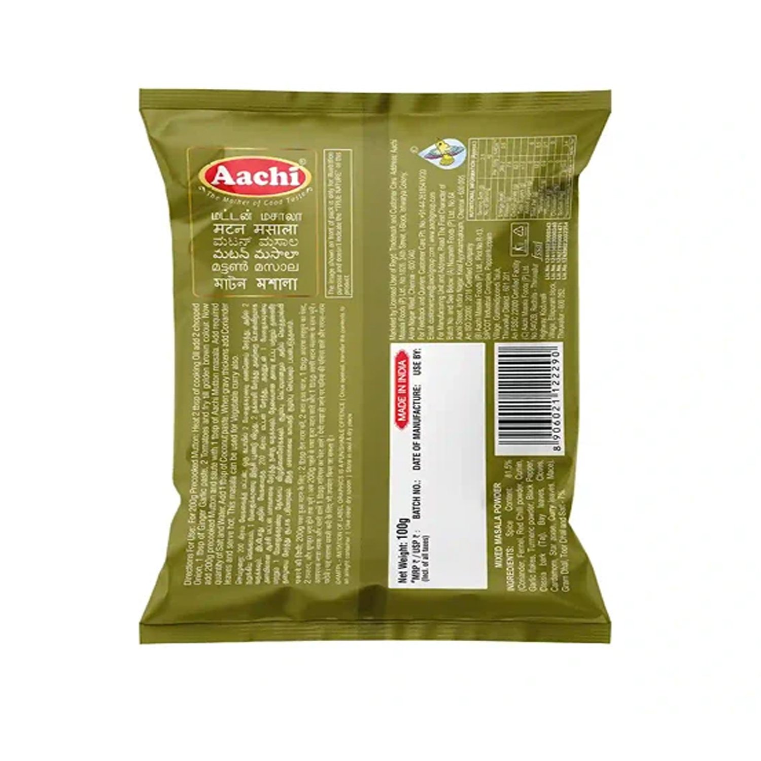 Aachi Mutton Masala is a specially crafted blend of aromatic spices designed to bring out the best in your mutton recipes. Whether you’re preparing a hearty curry, a slow-cooked stew, or a festive biryani, this masala enhances the natural richness of the meat with deep, warm, and authentic flavors. With Aachi Mutton Masala, you can enjoy traditional Indian dishes at home—easily and deliciously.