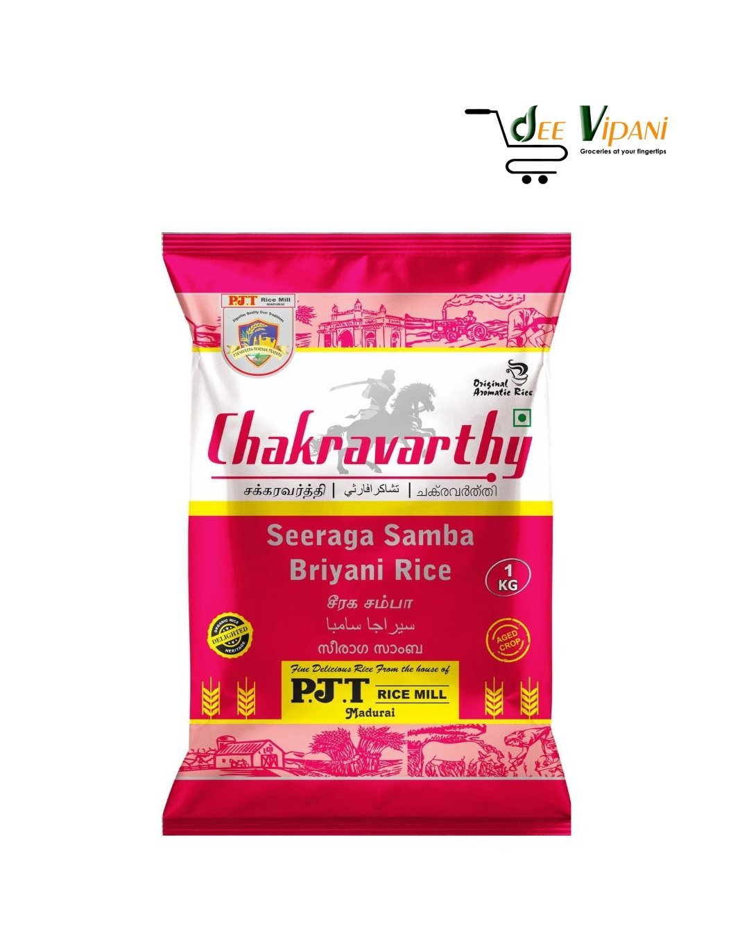 Chakravarthy Seeraga Samba Rice is a premium short-grain rice variety known for its unique aroma, fine texture, and rich flavor. Perfect for preparing authentic South Indian biryanis, pulao, and festive dishes, this rice absorbs flavors beautifully while retaining its firmness. Carefully sourced and hygienically packed to preserve freshness and quality, Chakravarthy Seeraga Samba Rice brings traditional taste straight to your kitchen.