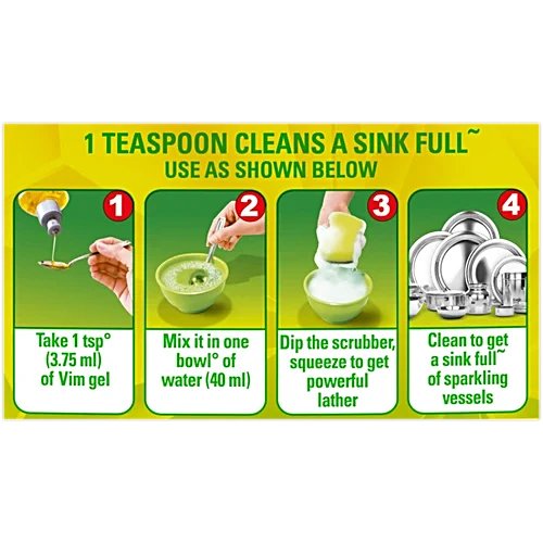 Vim Lemon Dishwash Liquid Gel delivers powerful grease-cutting performance to give you sparkling clean utensils with ease. Enriched with the natural power of lemon, it removes tough oil and food stains effectively while leaving behind a refreshing citrus fragrance.